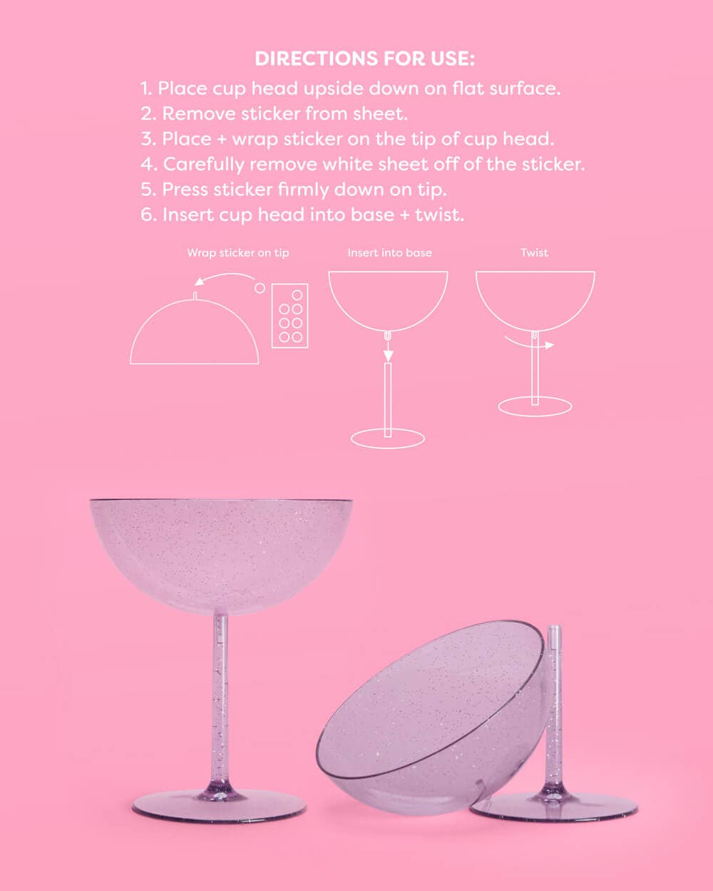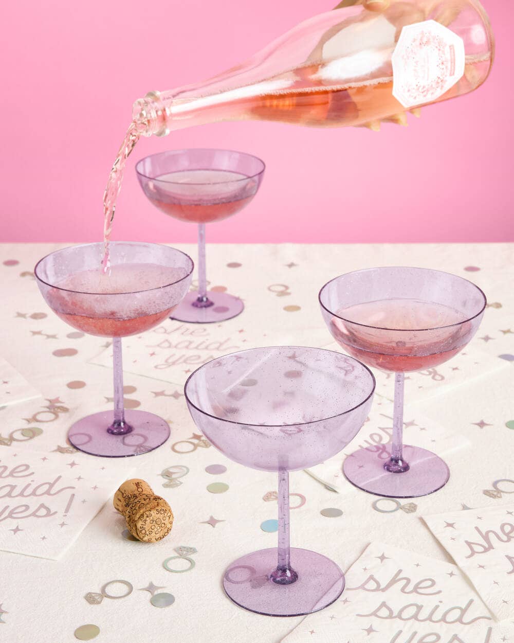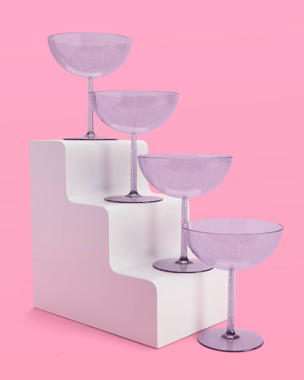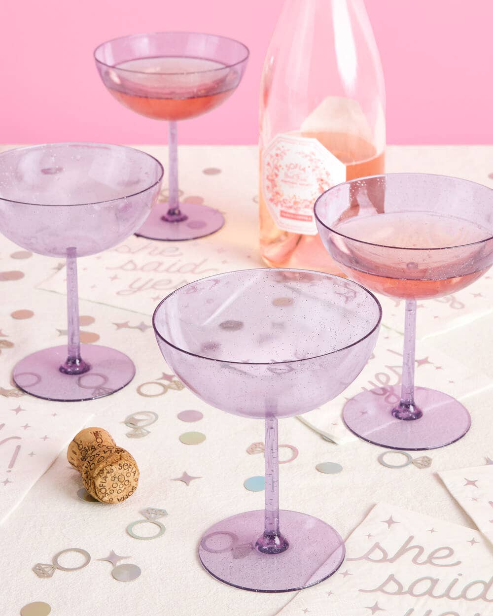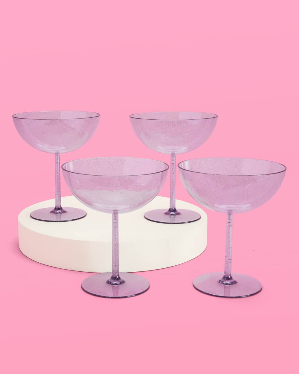 - Purple plastic glitter coupe glasses